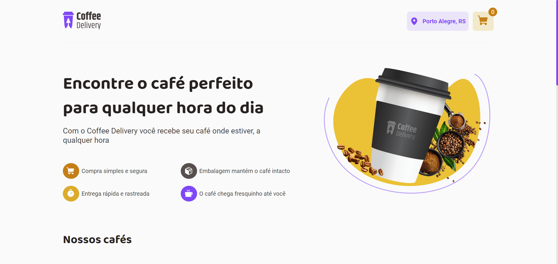 O Coffee Delivery foi um dos primeiros projetos desenvolvidos no curso completo de desenvolvedor front-end da Rocketseat.